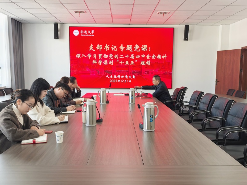 12月1日上午,人文社科处党支部召开全体党员会议,人文社科处处长、党支部书记孙泊围绕”深入学习贯彻党的二十届四中全会精神科学谋划‘十五五’规划”这一主题,讲授党课。